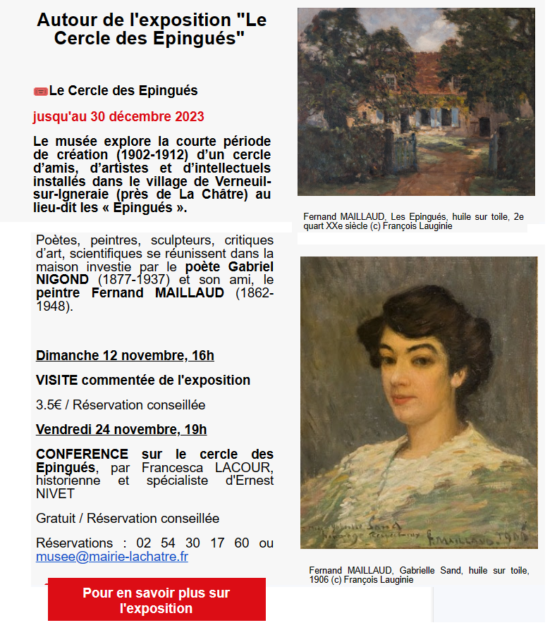 Le site internet du Cercle Amical du Berry a le plaisir de relayer la lettre de novembre 2023 du Musée George Sand et de la Vallée Noire.